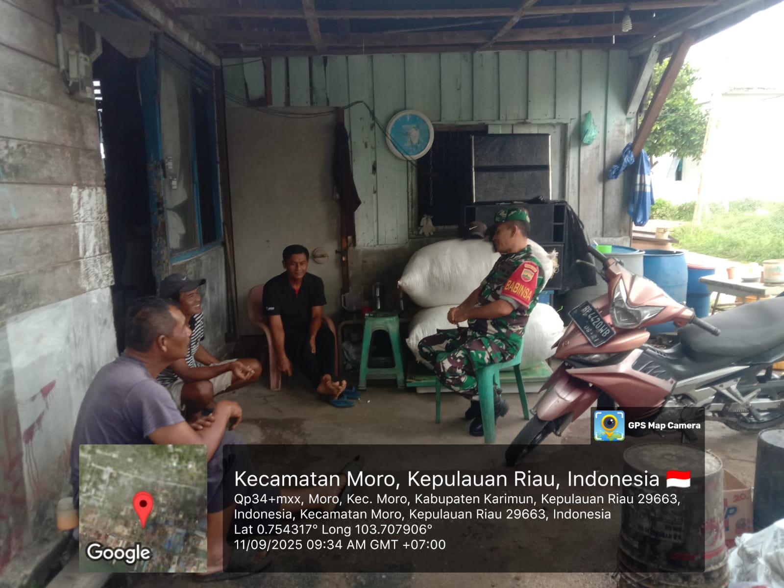 Moro, 11 September 2025 – Babinsa Kelurahan Moro Koramil 02/Moro Kodim 0317/TBK, Serda Sahrudi Harahap, melaksanakan kegiatan komunikasi sosial (Komsos) bersama warga binaan di Kampung Tengah RT 001/RW 002 Kelurahan Moro, Kecamatan Moro.