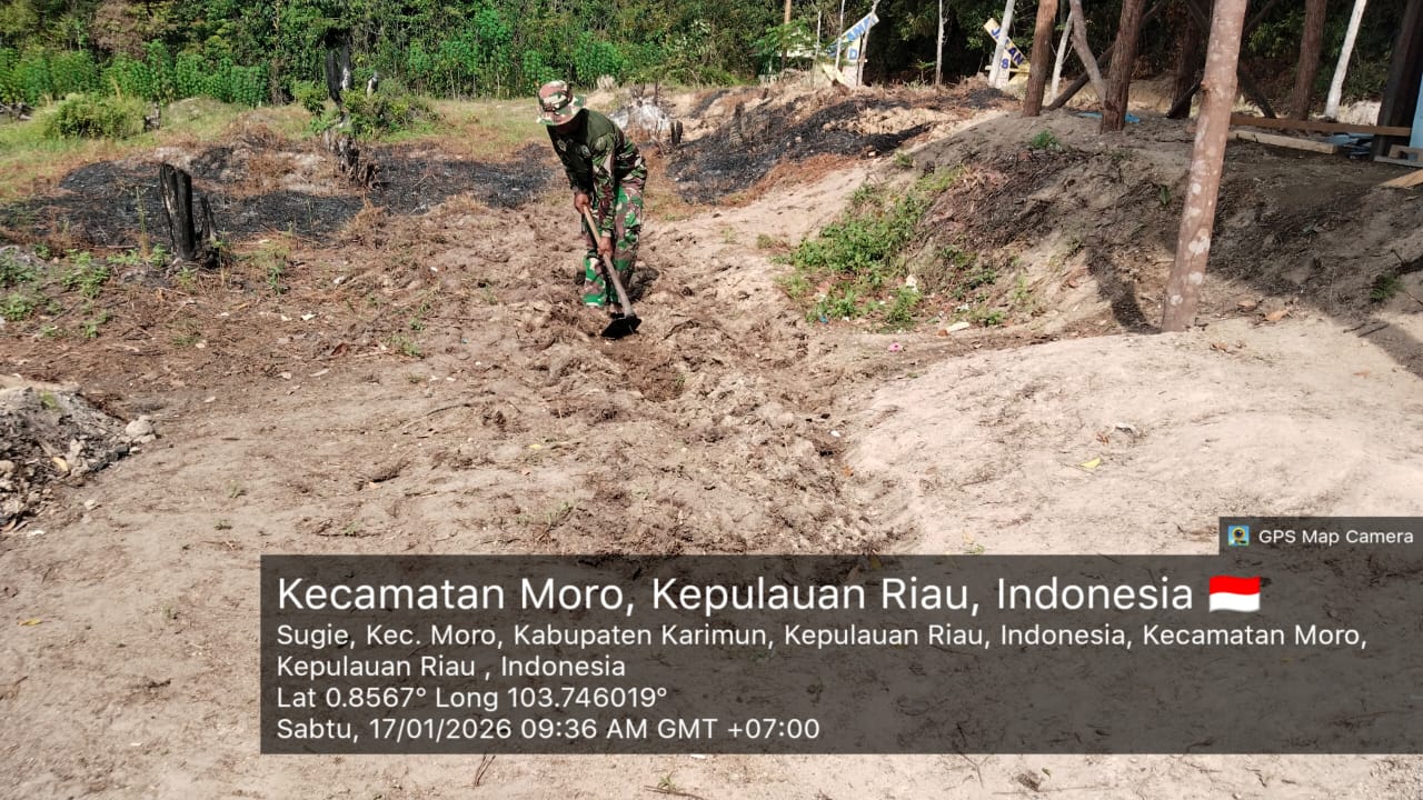 Moro – Babinsa Desa Sugie Koramil 02/Moro Kodim 0317/Tanjung Balai Karimun, Serma M. Amin, melaksanakan kegiatan pembuatan lubang tanam dalam rangka persiapan penanaman semangka pada Sabtu (17/01/2026) mulai pukul 08.00 WIB hingga selesai.