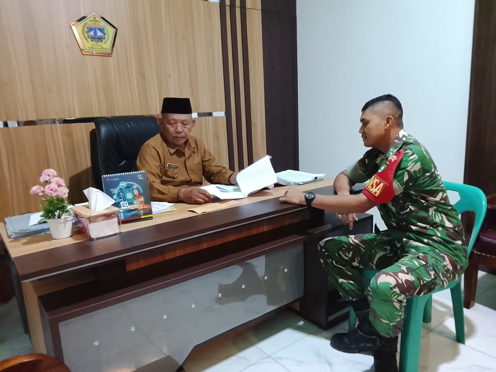 Dalam pertemuan tersebut, Kopda Firdaus berkoordinasi terkait kesiapan lahan, tahapan pelaksanaan, serta dukungan masyarakat terhadap pembangunan yang akan dilakukan.