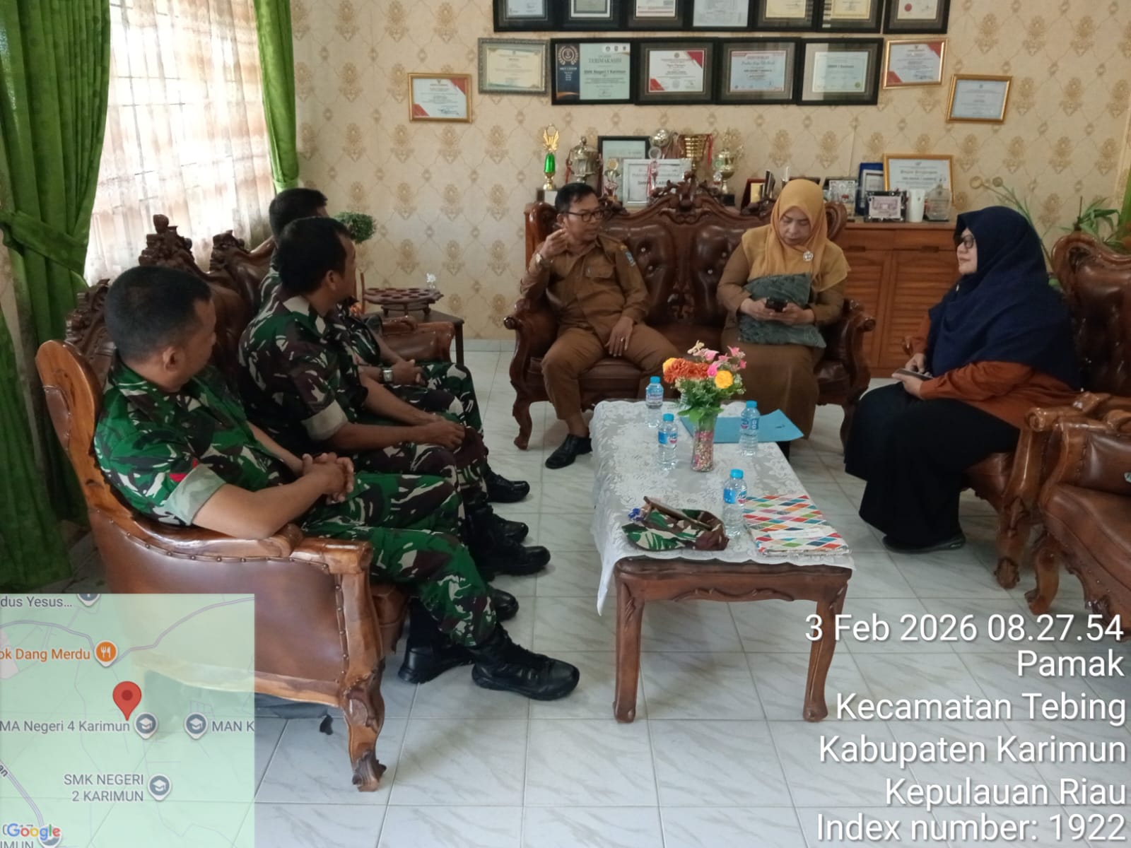 Karimun, 3 Februari 2026 – Babinsa Kelurahan Pamak/Harjosari, Babinsa Pangke Barat, dan Babinsa Kel. Tebing Koramil 04/Tebing Kodim 0317/TBK, melaksanakan pembahasan kesepakatan MOU dengan pihak Sekolah SMKN 1 Karimun, pada hari Selasa, 3 Februari 2026, pukul 09.00 WIB. Kegiatan ini bertujuan untuk meningkatkan kerja sama antara Koramil 04/Tebing dan SMKN 1 Karimun dalam meningkatkan kualitas pendidikan dan keamanan di wilayah Tebing.