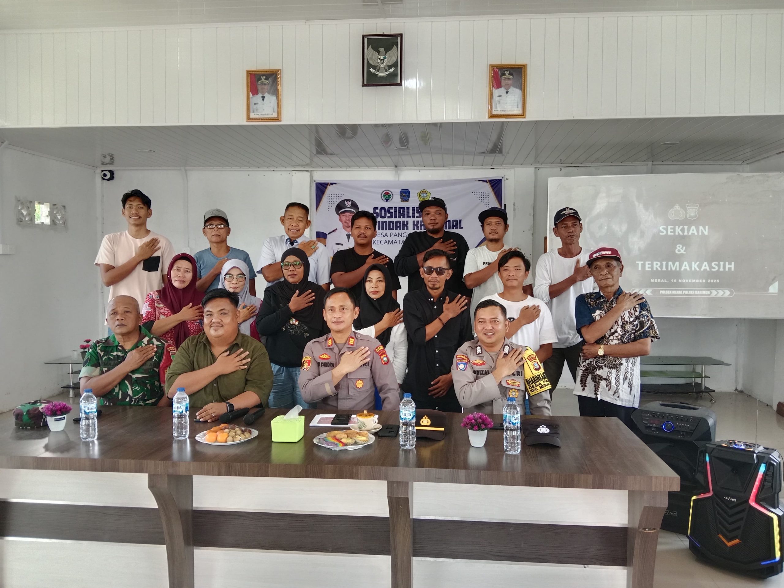 KARIMUN – Upaya pencegahan kriminalitas dan pembinaan masyarakat terus dilakukan di wilayah Kabupaten Karimun. Babinsa Koramil 04/Tebing Kodim 0317/TBK, Serka Atmaja, menjadi narasumber dalam kegiatan Sosialisasi Pencegahan Tindak Kriminal yang digelar di Gedung Laksana Bentan, Desa Pangke, Minggu (16/11/2025).