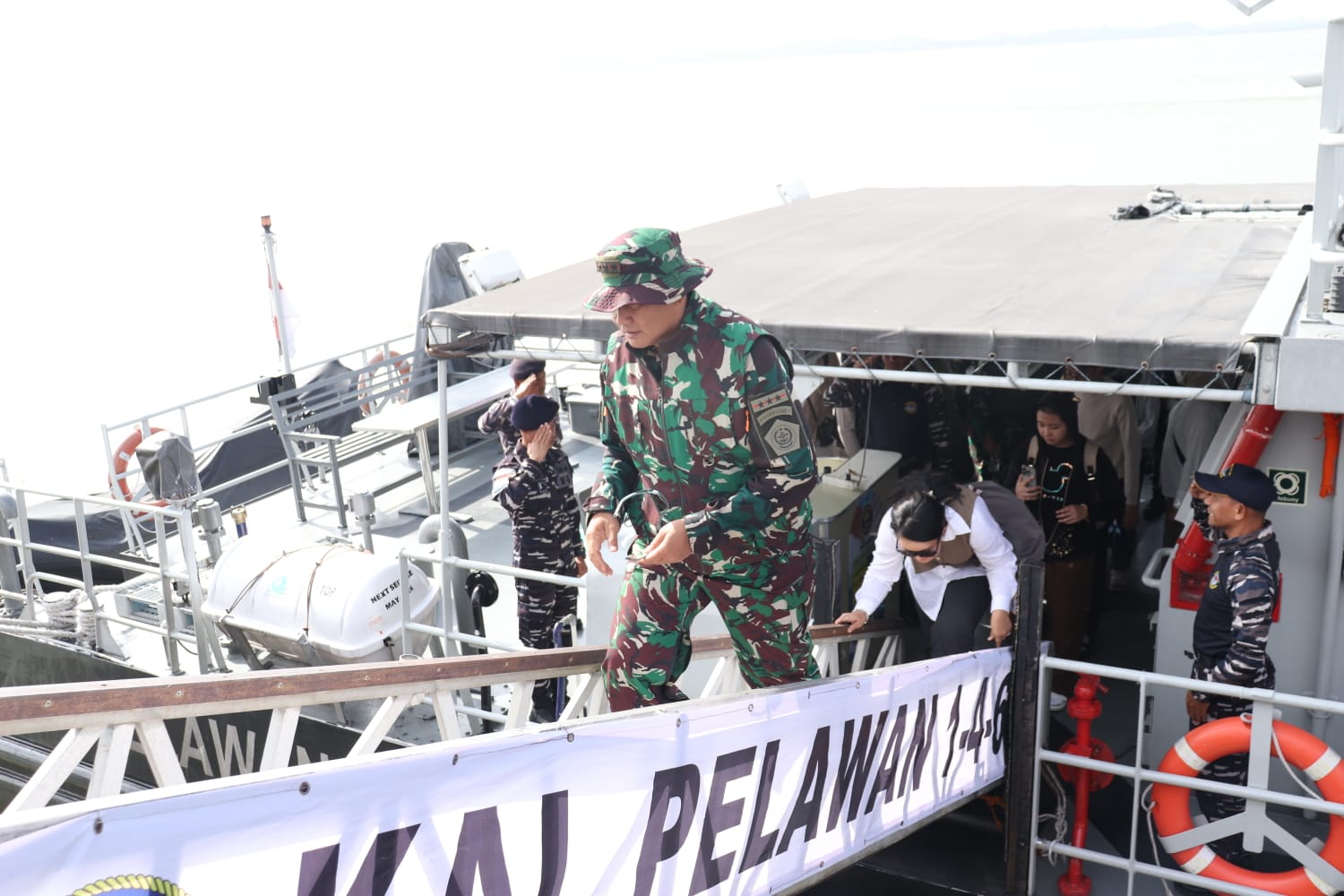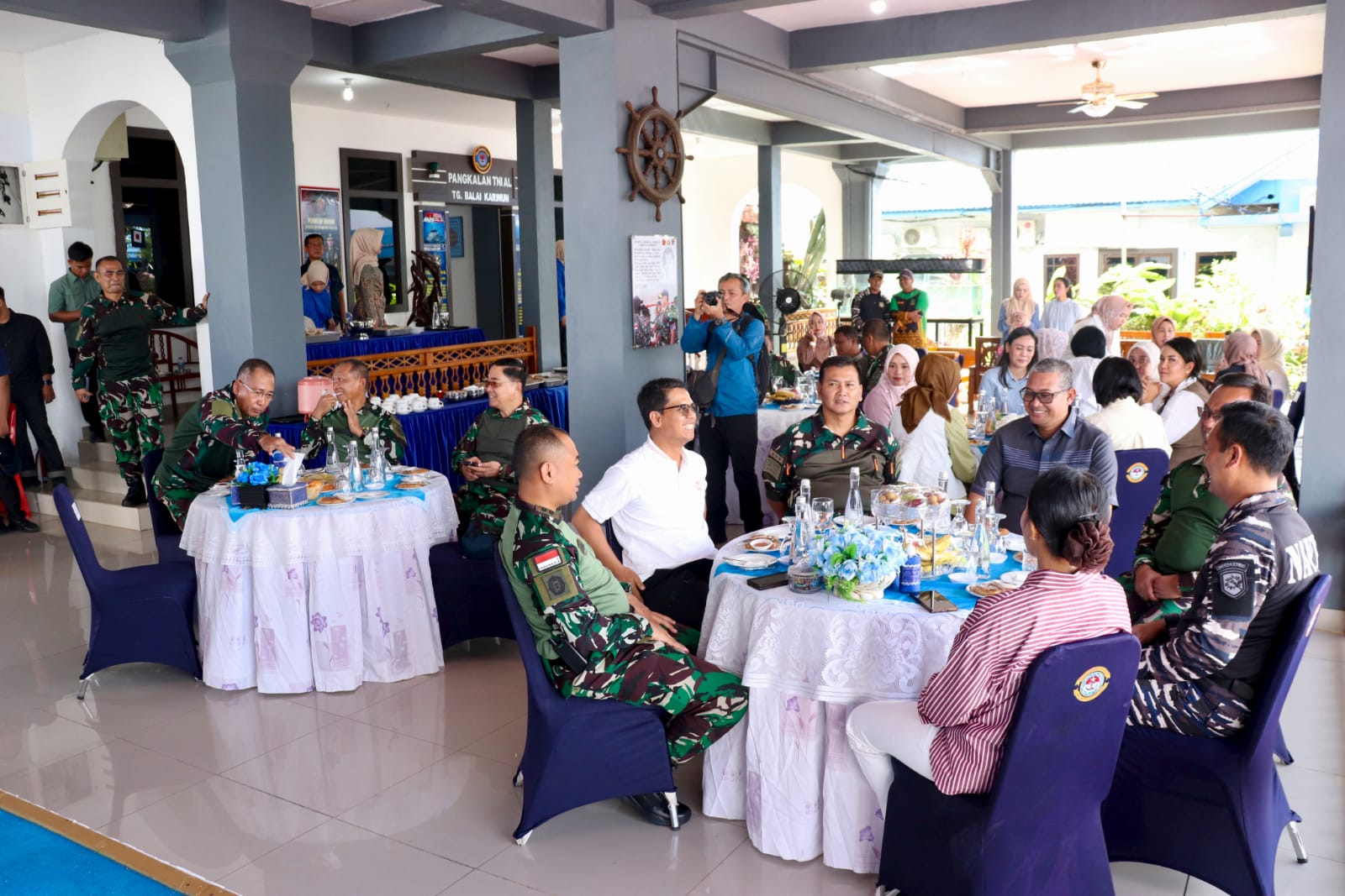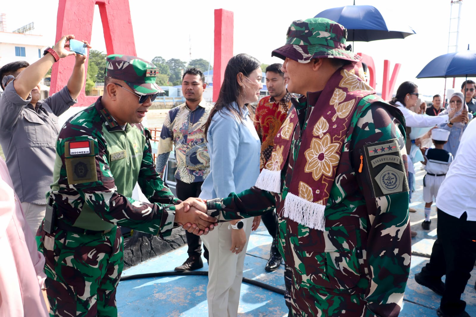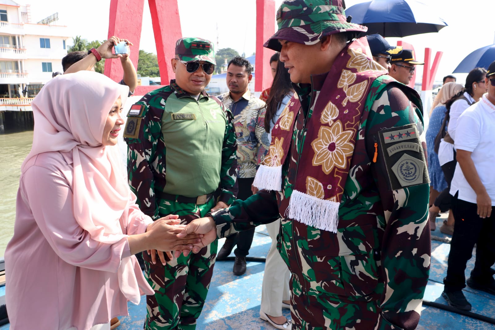 Pangkogabwilhan I hadir didampingi Ketua IKKT PWA CBS II Kogabwilhan I, Ny. Mia Kunto Arief Wibowo, Kas Kogabwilhan I Laksda TNI Amrin Rosihan Hendrotomo, S.E., Para Asisten Kogabwilhan I, Turut hadir Bupati Karimun Ing Iskandarsyah, Komandan Lanal Tanjung Balai Karimun Letkol Laut (P) Chrestian Noya, M.Tr.Oplsa, serta tamu undangan lainnya.