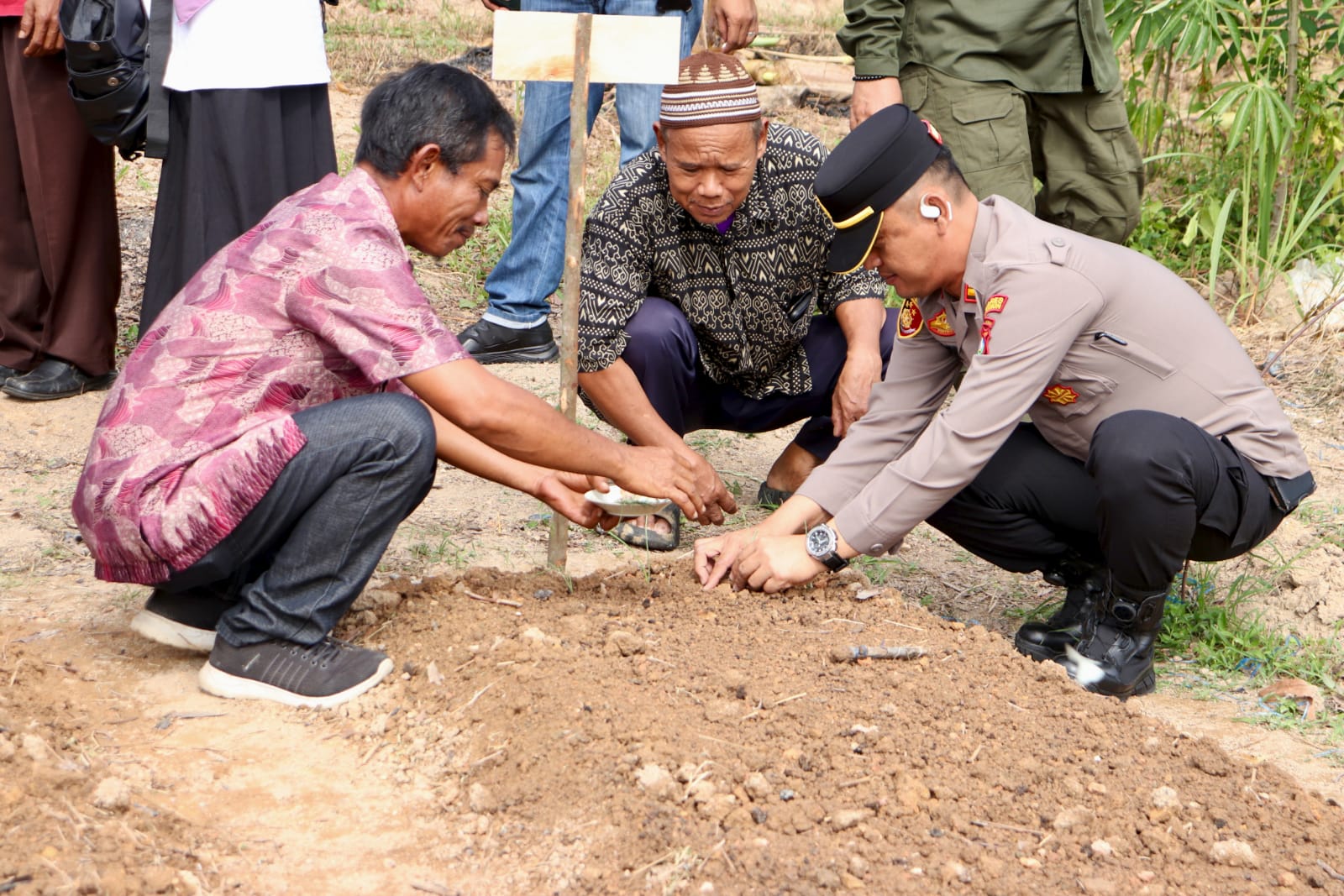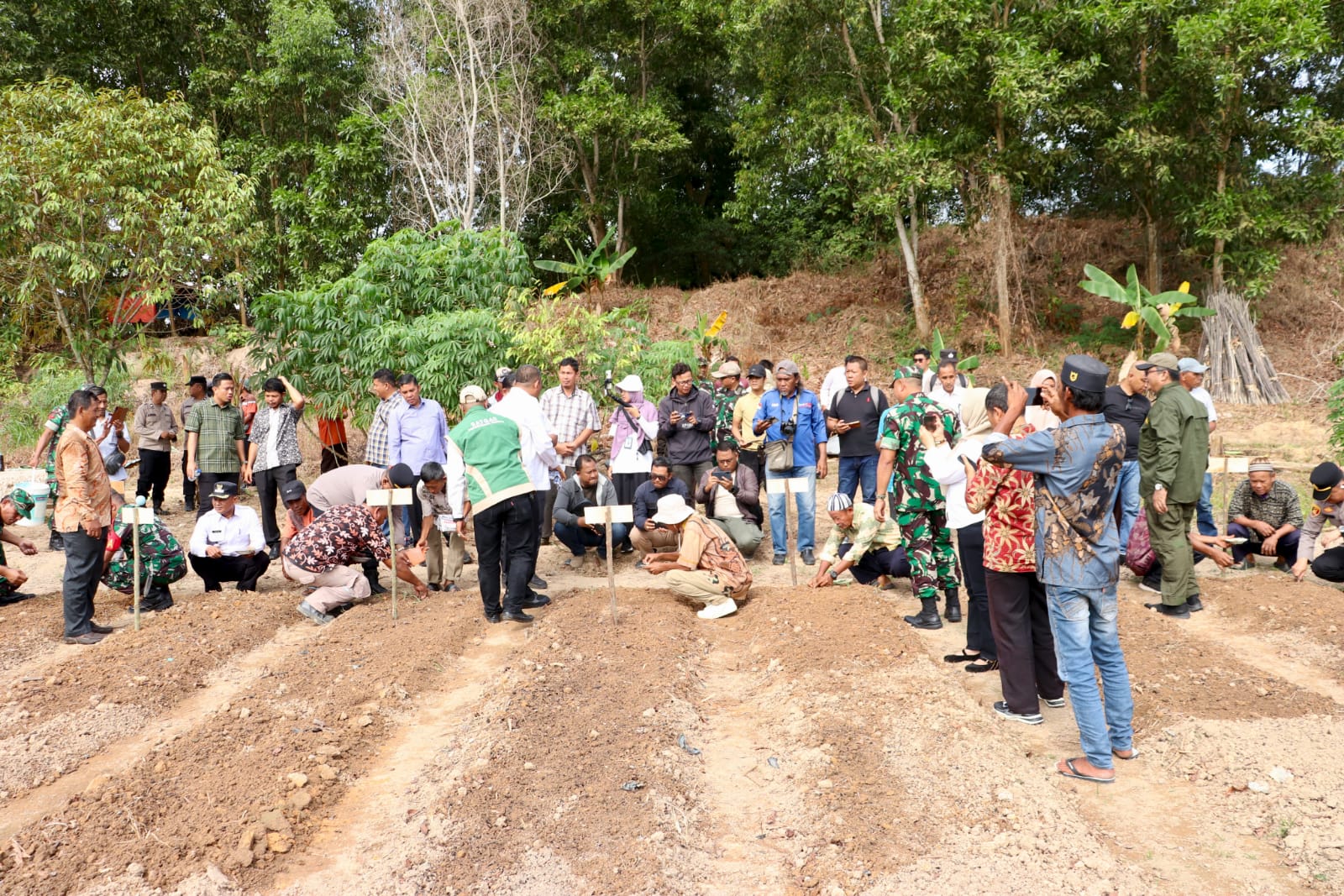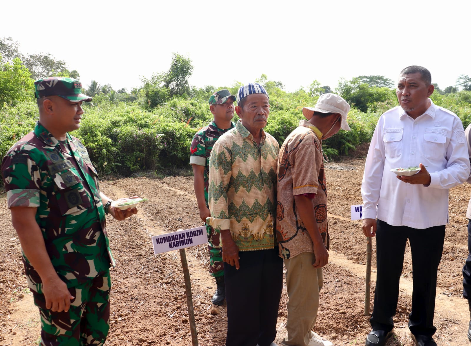 Penanaman bawang merah perdana dilakukan secara simbolis oleh Dandim 0317/TBK bersama Wakil Bupati Karimun, Kepala Dinas Pertanian, penyuluh pertanian, camat, lurah, dan kelompok tani setempat.
