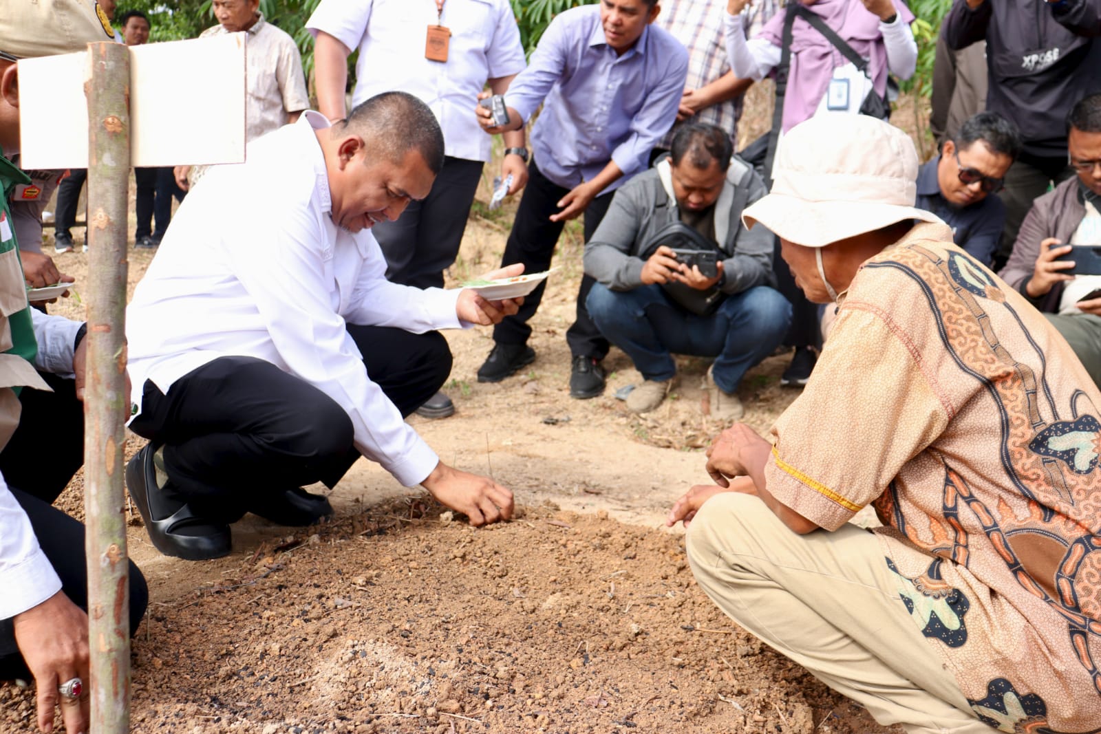 Turut hadir dalam kegiatan tersebut Wakil Bupati Karimun Rocky Marchiano Bawole, Kepala Dinas Pertanian Kabupaten Karimun Sukri Jaya Putra, S.P., M.M., para penyuluh pertanian lapangan, Camat Tebing, Polsek Tebing dan Meral, Danramil 04/Tebing, para lurah, serta sekitar 95 orang anggota kelompok tani.