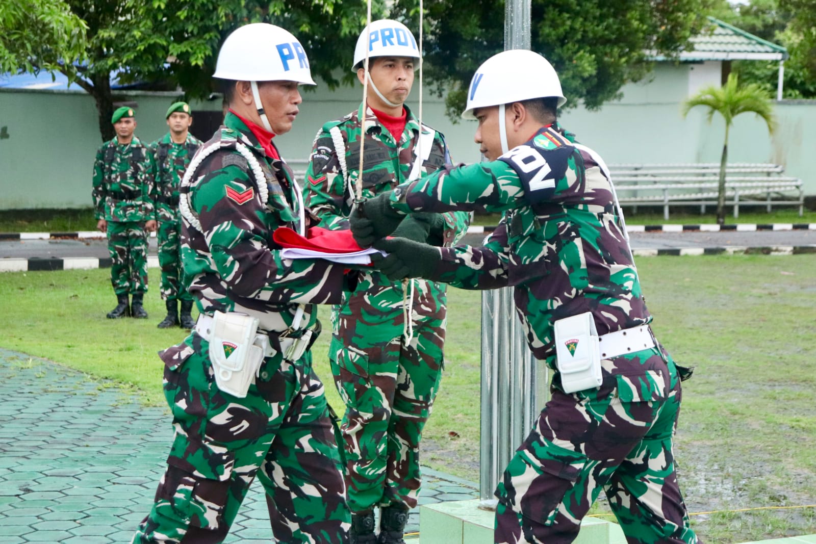 Upacara tersebut diikuti oleh personel Perwira, Bintara dan Tamtama Kodim 0317/TBK, prajurit Kipan B Yonif 136/Tuah Sakti, serta personel Subdenpom 1/6-2 Tanjung Balai Karimun, dengan berlangsung khidmat dan tertib.