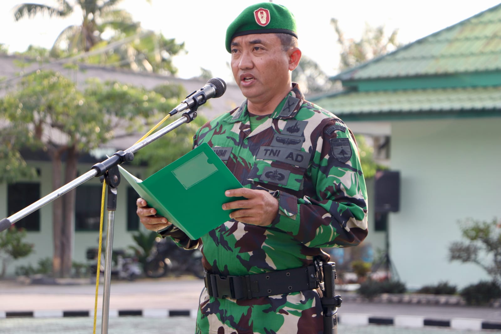Kasdim juga menyampaikan lima penekanan Panglima TNI menghadapi dinamika lingkungan strategis yang semakin kompleks: tingkatkan keimanan dan ketakwaan serta pegang teguh Sapta Marga, Sumpah Prajurit, dan 8 Wajib TNI; ikuti perkembangan lingkungan strategis untuk membangun kewaspadaan satuan; tingkatkan kehati-hatian dalam bertindak, taat hukum, dan jaga kehormatan TNI; bijak dan cermat menyikapi informasi serta tidak mudah terpengaruh berita di media sosial; dan terus menjadi pioner mewujudkan TNI yang Profesional, Responsif, Integratif, Modern, dan Adaptif.