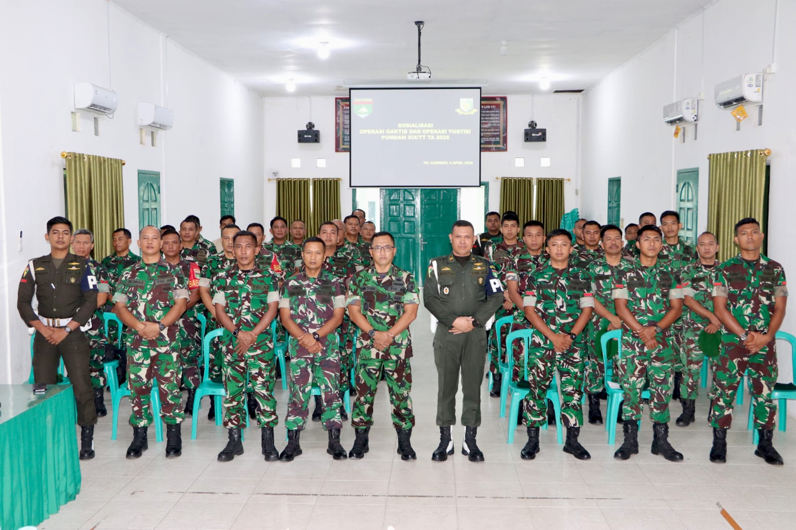 Karimun, 9 April 2026 – Kodim 0317/TBK mengikuti Sosialisasi Operasi Gaktib dan Yustisi di Jajaran Kodam XIX/TT, Kamis (9/4). Kegiatan ini dihadiri oleh Mayor Inf Istain Tamimi (Kasdim 0317/TBK), Lettu Inf Haryono (Pasi Pers Kodim 0317/TBK), dan Lettu CPM S. Nasution (Dansubdenpom 1/6-2 TBK).