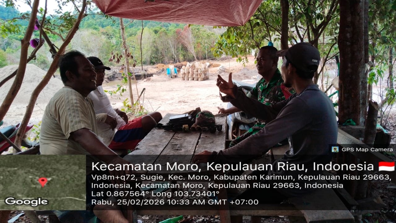 Karimun, 25 Februari 2026 – Serma M. Amin, Babinsa Desa Sugie Koramil 02/Moro Kodim 0317/TBK, melaksanakan komsos dengan warga binaan, pada hari Rabu, 25 Februari 2026, pukul 09:30 WIB.