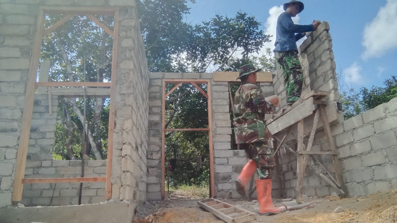 Meskipun terik matahari menyengat, para personel Satgas yang dipimpin oleh Sertu Hedra Gunawan tetap bekerja dengan penuh dedikasi. Bersama warga sekitar, mereka bahu-membahu melakukan pemasangan tembok batako untuk mempercepat proses penyelesaian pembangunan rumah.