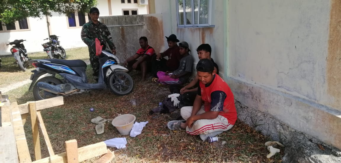 Dalam kegiatan ini, Sertu Yadi Mulyadi bertemu dengan anggota tukang dan membahas tentang kegiatan yang sedang berlangsung.
